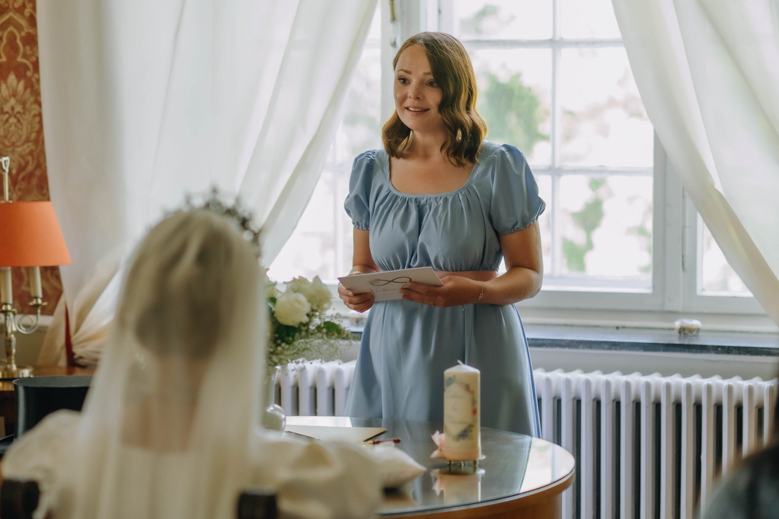 Ich begleite euch durch diesen Moment mit Worten, die euch wirklich widerspiegeln. Mit Humor, der euch zum Lachen bringt. Mit emotionaler Tiefe, die berührt. Und mit einer Leichtigkeit, die Raum lässt für all die echten Gefühle, die an diesem Tag spürbar sind.